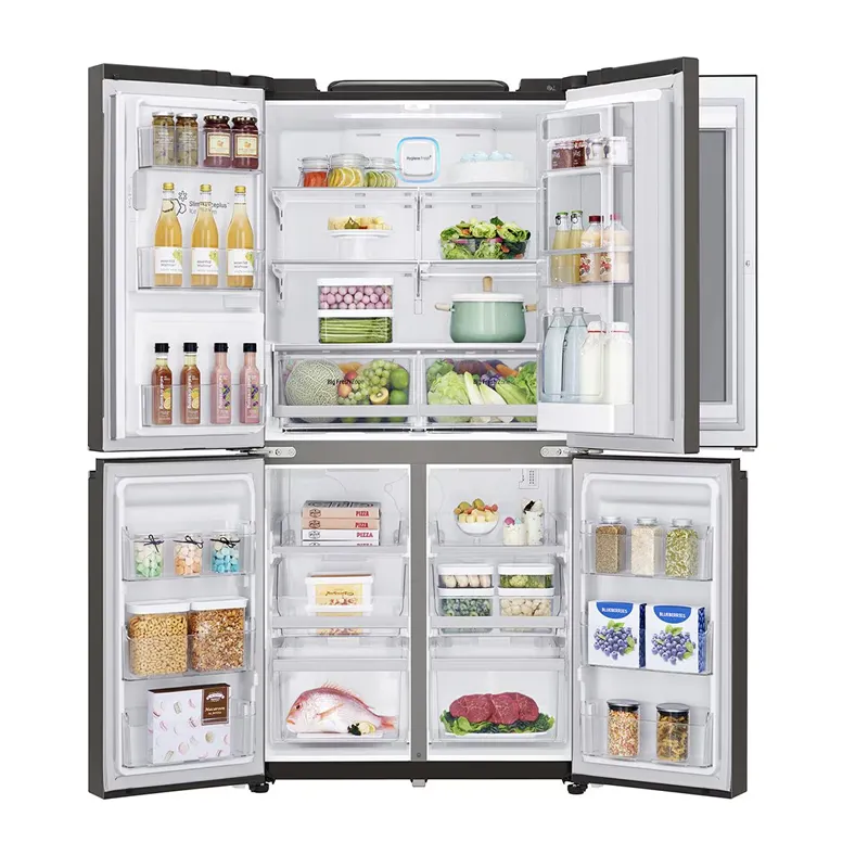 در بخش فریزر، سیستم بدون برفک کار را آسان می کند. انجماد سریع کیفیت مواد منجمد را بهتر حفظ می کند. دو درب و چیدمان داخلی دسترسی را سریع تر می کند. امکانات هوشمند مثل دستیار صوتی، قفل کودک، اتصال به وای فای و پشتیبانی از گوشی حس کنترل و امنیت ایجاد می کند.